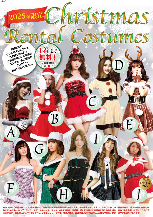 クリスマスの時期にピッタリのコスプレ衣装を今年も用意いたしました! 特別な夜を特別な装いでお楽しみください♪