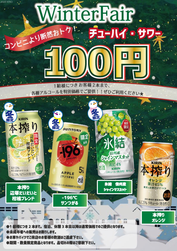 ★冬季限定チューハイ・サワー100円フェア第2弾スタート★